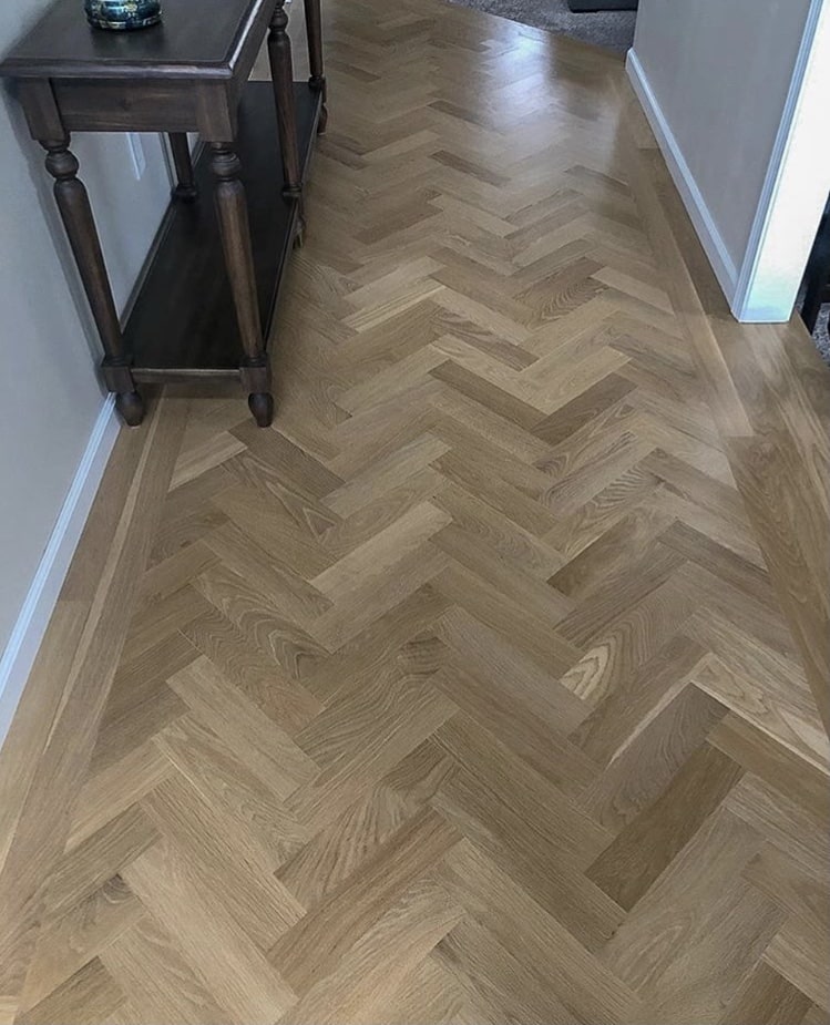 Engineered White Oak flooring can be installed in basements where moisture levels are controlled.